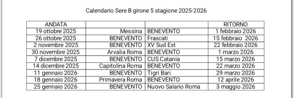 L’avventura in Serie B del Benevento prenderà il via domenica 19 ottobre 2025. Le rivali saranno nove: tre siciliane, una pugliese e cinque laziali. Grande l’attesa per vedere all’opera, nella categoria superiore, la formazione allenata da Annibale Fusco, reduce da una straordinaria stagione in Serie C, conclusa con la vittoria di un campionato difficile e coronata da una storica finale decisa all’ultimo istante. Confermato in blocco il gruppo di giocatori che ha compiuto l’impresa di riportare rapidamente la gloriosa società sannita nei campionati nazionali. Ora l’obiettivo è il salto di qualità: un traguardo alla portata di una squadra giovane, dotata di notevoli qualità tecniche e già sufficientemente esperta per affrontare avversari di maggiore caratura.